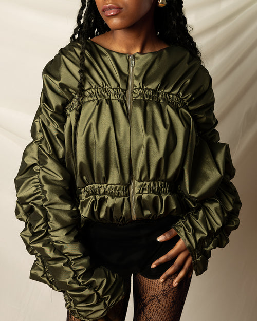 Veste courte froncée kaki